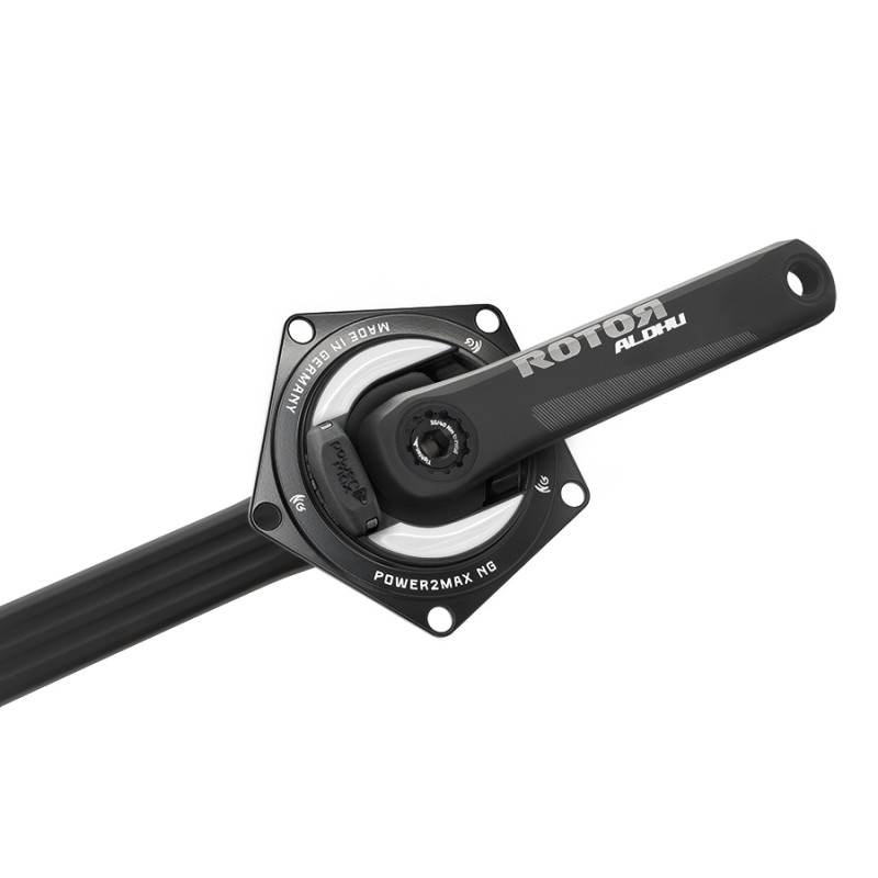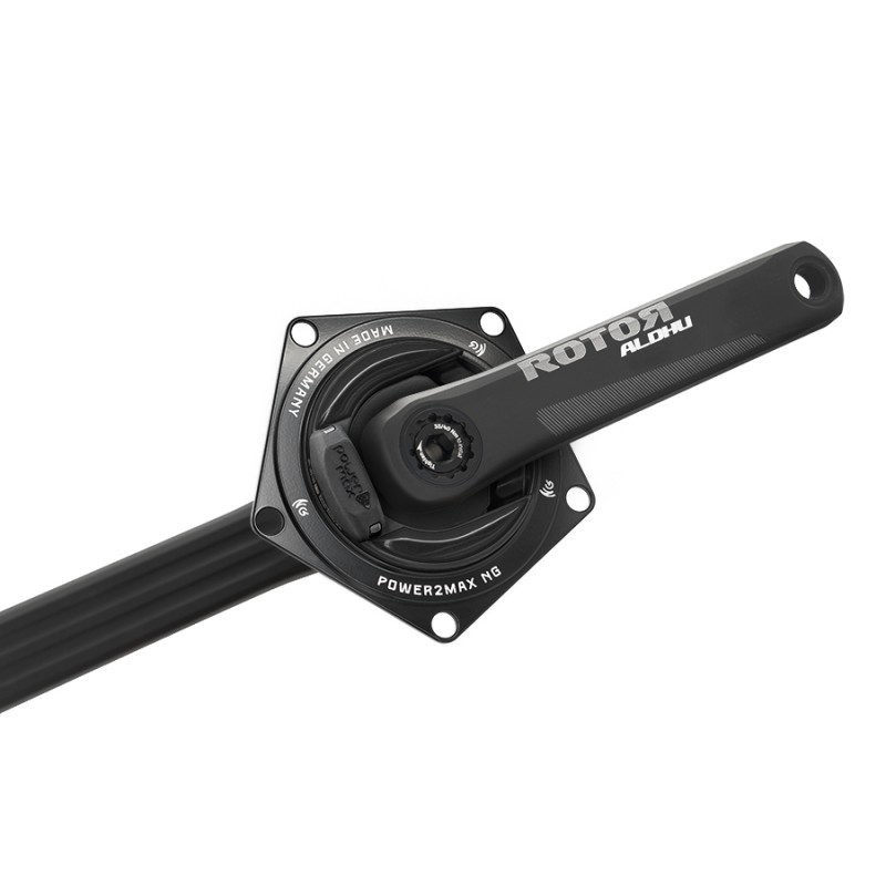 El set consiste en la araña con medidor de potencia NGeco y el juego de bielas Rotor ALDHU 24 con eje de acero de 24mm. Es compatible con el tipo de pedalier Shimano Hollowtech 2.
